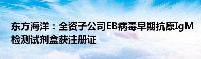 东方海洋:全资子公司EB病毒早期抗原IgM检测试剂盒获注册证