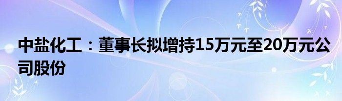 中盐化工:董事长拟增持15万元至20万元公司股份