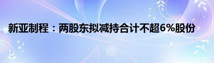 新亚制程公告,持股5%以上的股东湖南湘材和维也利计划减持公司股份。其中,湖南湘材计划通过集中竞价交易减持不超过5,106,976股,通过大宗交易减持不超过10,213,952股,合计不超过总股本的3%。维也利计划通过集中竞价交易减持不超过5,106,976股,通过大宗交易减持不超过10,213,952股,合计不超过总股本的3%。减持原因均为股东自身资金需求及财务安排。减持期间为自公告披露之日起15个交易日后的三个月内。