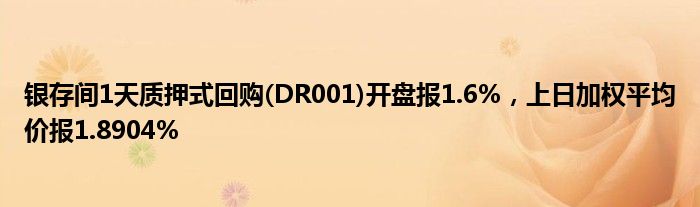 银存间1天质押式回购(DR001)开盘报1.6%,上日加权平均价报1.8904%