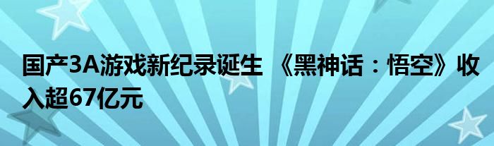 国产3A游戏新纪录诞生 《黑神话:悟空》收入超67亿元