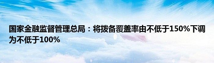 国家金融监督管理总局:将拨备覆盖率由不低于150%下调为不低于100%