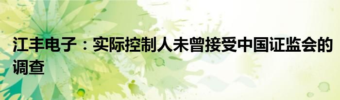 江丰电子:实际控制人未曾接受中国证监会的调查