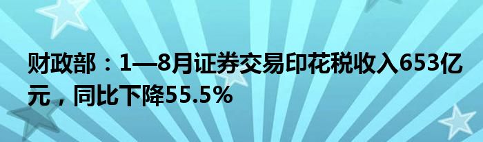 财政部:1—8月证券交易印花税收入653亿元,同比下降55.5%