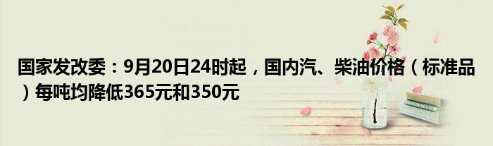 国家发改委:9月20日24时起,国内汽、柴油价格(标准品)每吨均降低365元和350元