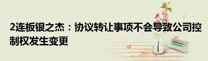 2连板银之杰:协议转让事项不会导致公司控制权发生变更