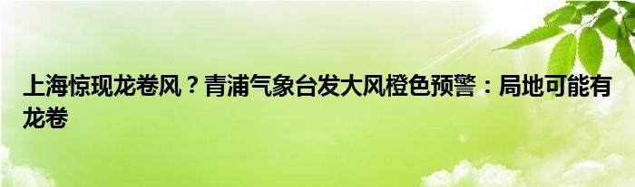上海惊现龙卷风?青浦气象台发大风橙色预警:局地可能有龙卷