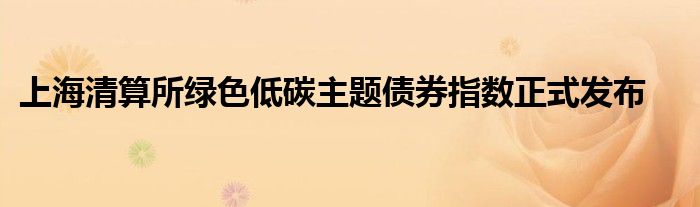 上海清算所绿色低碳主题债券指数正式发布