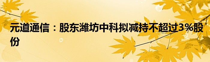 元道通信:股东潍坊中科拟减持不超过3%股份