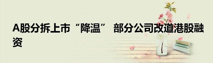 A股分拆上市“降温” 部分公司改道港股融资
