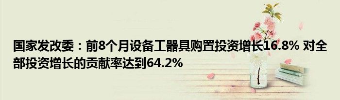 国家发改委:前8个月设备工器具购置投资增长16.8% 对全部投资增长的贡献率达到64.2%