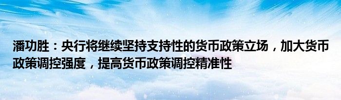 潘功胜:央行将继续坚持支持性的货币政策立场,加大货币政策调控强度,提高货币政策调控精准性