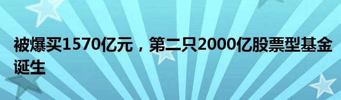 被爆买1570亿元,第二只2000亿股票型基金诞生