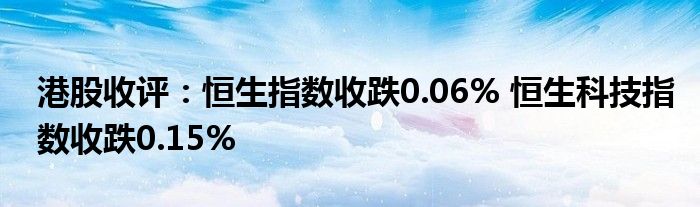 港股收评:恒生指数收跌0.06% 恒生科技指数收跌0.15%