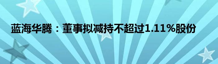 蓝海华腾公告,公司董事姜仲文、傅颖、时仁帅计划减持不超过230万股,占公司总股本的1.11%。减持原因为自身资金需求,减持方式为集中竞价交易或大宗交易。减持价格将根据市场价格确定,但不低于发行价。