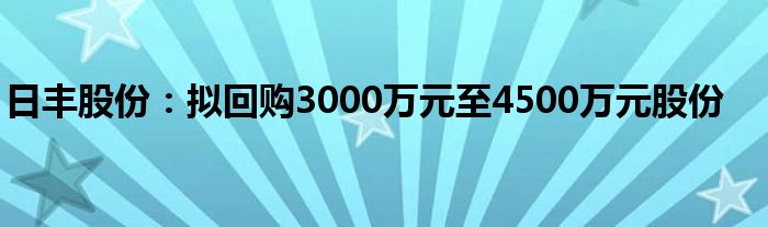 日丰股份:拟回购3000万元至4500万元股份