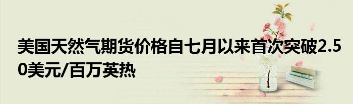 美国天然气期货价格自七月以来首次突破2.50美元/百万英热。