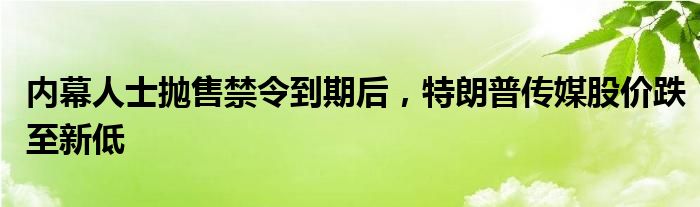 内幕人士抛售禁令到期后,特朗普传媒股价跌至新低
