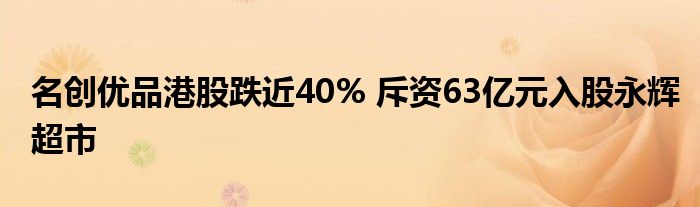 名创优品港股跌近40% 斥资63亿元入股永辉超市