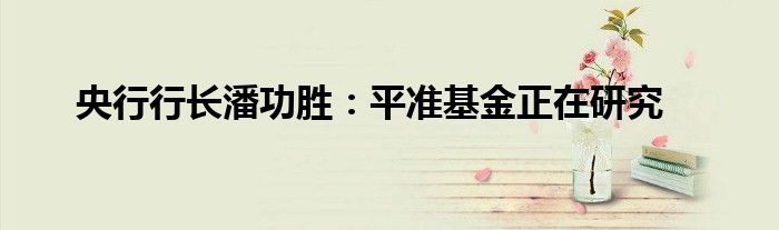 央行行长潘功胜:平准基金正在研究