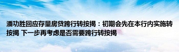 潘功胜回应存量房贷跨行转按揭:初期会先在本行内实施转按揭 下一步再考虑是否需要跨行转按揭