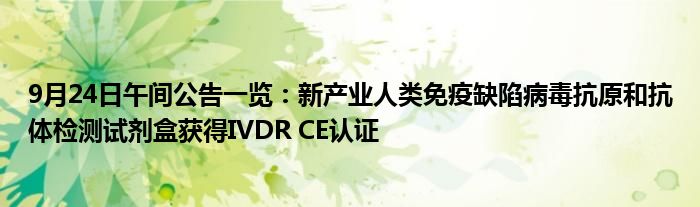 9月24日午间公告一览:新产业人类免疫缺陷病毒抗原和抗体检测试剂盒获得IVDR CE认证
