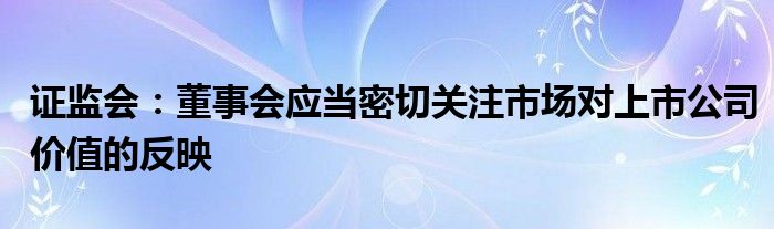 证监会:董事会应当密切关注市场对上市公司价值的反映
