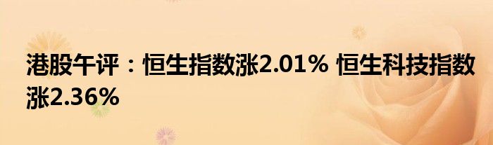 港股午评:恒生指数涨2.01% 恒生科技指数涨2.36%