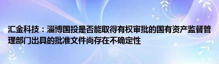 汇金科技:淄博国投是否能取得有权审批的国有资产监督管理部门出具的批准文件尚存在不确定性