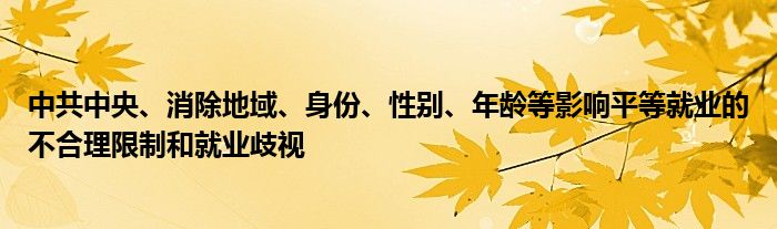 中共中央、消除地域、身份、性别、年龄等影响平等就业的不合理限制和就业歧视