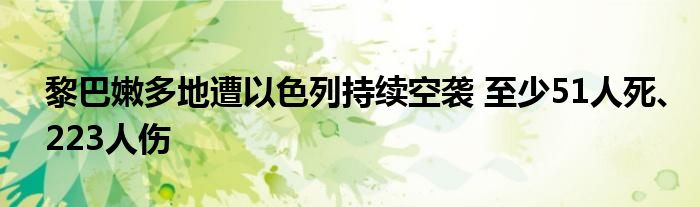 黎巴嫩多地遭以色列持续空袭 至少51人死、223人伤
