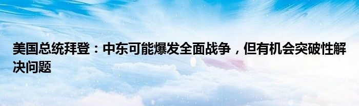 美国总统拜登:中东可能爆发全面战争,但有机会突破性解决问题。