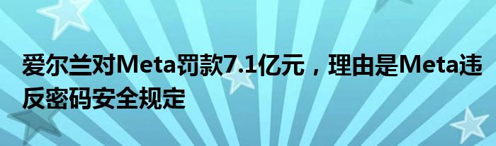 爱尔兰对Meta罚款7.1亿元,理由是Meta违反密码安全规定