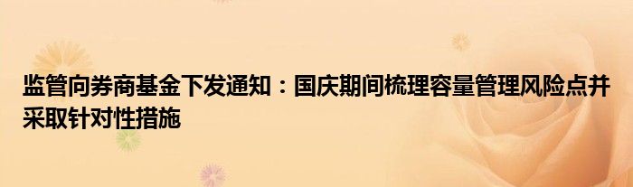 监管向券商基金下发通知:国庆期间梳理容量管理风险点并采取针对性措施