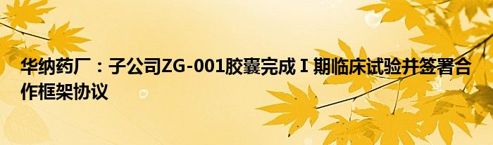华纳药厂:子公司ZG-001胶囊完成Ⅰ期临床试验并签署合作框架协议