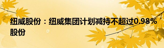 纽威股份:纽威集团计划减持不超过0.98%股份
