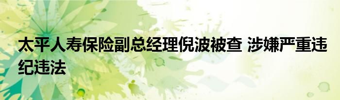 太平人寿保险副总经理倪波被查 涉嫌严重违纪违法