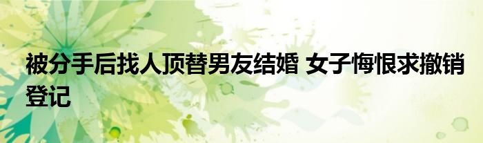 被分手后找人顶替男友结婚 女子悔恨求撤销登记
