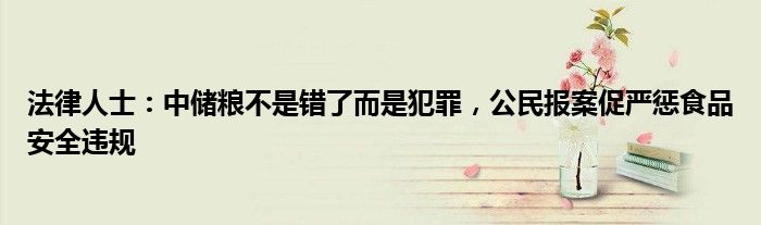 法律人士:中储粮不是错了而是犯罪,公民报案促严惩食品安全违规