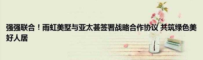 强强联合!雨虹美墅与亚太荟签署战略合作协议 共筑绿色美好人居