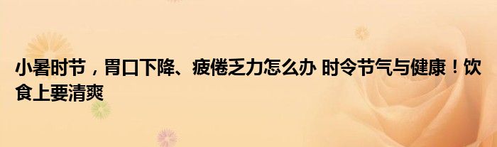 小暑时节,胃口下降、疲倦乏力怎么办 时令节气与健康!饮食上要清爽