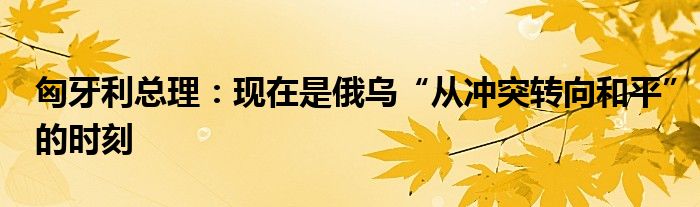 匈牙利总理:现在是俄乌“从冲突转向和平”的时刻