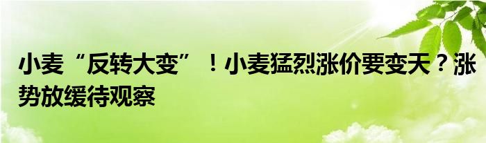 小麦“反转大变”!小麦猛烈涨价要变天?涨势放缓待观察