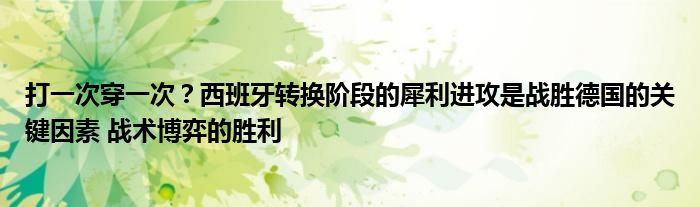 打一次穿一次?西班牙转换阶段的犀利进攻是战胜德国的关键因素 战术博弈的胜利