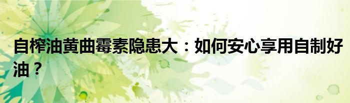 自榨油黄曲霉素隐患大:如何安心享用自制好油?