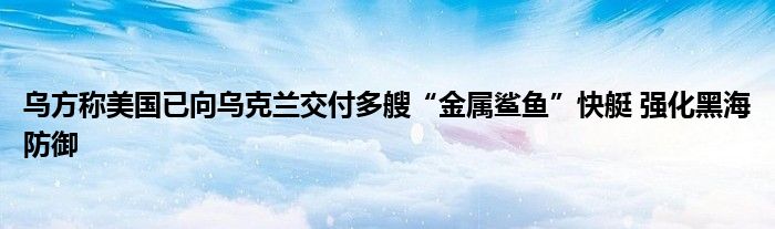 乌方称美国已向乌克兰交付多艘“金属鲨鱼”快艇 强化黑海防御
