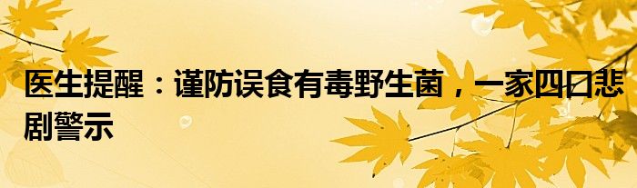 医生提醒:谨防误食有毒野生菌,一家四口悲剧警示