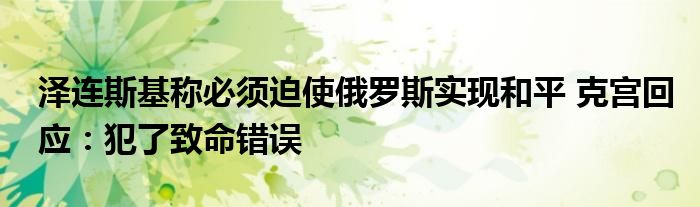 泽连斯基称必须迫使俄罗斯实现和平 克宫回应:犯了致命错误