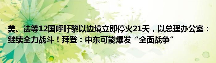 美、法等12国呼吁黎以边境立即停火21天,以总理办公室:继续全力战斗!拜登:中东可能爆发“全面战争”