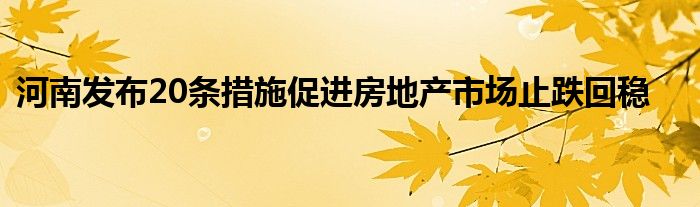 【河南发布 20 条措施促进房地产市场止跌回稳】财联社 9 月 30 日电,河南省住房和城乡建设厅等 7 部门联合在全国率先印发《关于进一步促进房地产市场平稳健康发展的若干措施》,以 20 条措施促进房地产市场止跌回稳,推动构建房地产发展新模式。从大力支持住房消费、加大金融支持力度、严格控制增量供应、进一步优化存量、提高供应质量、推动构建房地产发展新模式六个方面,详细制定了 20 条具体措施主要包括取消商品住房限制政策;加大购房补贴、契税补贴、人才购房补贴力度;持续开展购房节、家装焕新等住房联动促销活动;加快推动降低存量房贷利率、优化房贷最低首付比例;加快 " 白名单 " 问题项目整改修复;严格控制新增住房供应节奏;郑州、开封、济源示范区加快推进现房销售试点工作等。取消商品住房限制政策,购买商品住房(含新建商品住房和二手住房),无需审核购房人资格。取消商品住房(含新建商品住房和二手住房)转让限制年限规定(有限制产权转让的除外),自取得不动产权证(房屋所有权证)之日起即可转让。取消普通住宅和非普通住宅标准。对个人消费者旧房装修、厨卫等局部改造和适老化改造等所需物品和材料给予补贴,每套最高不超 2 万元。鼓励各地结合当地实际,优化调整房地产项目计容面积、公摊等建筑设计规则,提高商品住宅得房率。